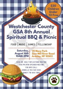 Westchester County Annual Picnic Agenda ChairMay 16, 2025 Westchester County Annual Picnic 10:00 am – 3:00 pmAugust 16, 2025 VE Marcy ParkSaw Mill River RoadArdsley, NY 10502View LocationMap VE Marcy Park iCal Google Calendar View full calendar <span class="nav-subtitle screen-reader-text">Page</span> Suffolk General Service Meeting New GSR Orientation Hybrid August 15, 2025Nassau GS and Hispanic Community Presents “Promises other than pages 83 & 84” August 16, 2025 Related Posts Carrying The Message Workshop Presented by SENY PI and CPC with Putnam County Westchester County Annual Picnic 10:00 am – 3:00 pmAugust 16,... Kate FOct 26, 2025Oct 26, 2025 [SENY] Intergroup Liason Meeting Westchester County Annual Picnic 10:00 am – 3:00 pmAugust 16,... Agenda ChairOct 24, 2025Oct 24, 2025 [SENY] 58th Annual SENY Convention Westchester County Annual Picnic 10:00 am – 3:00 pmAugust 16,... Agenda ChairOct 13, 2025